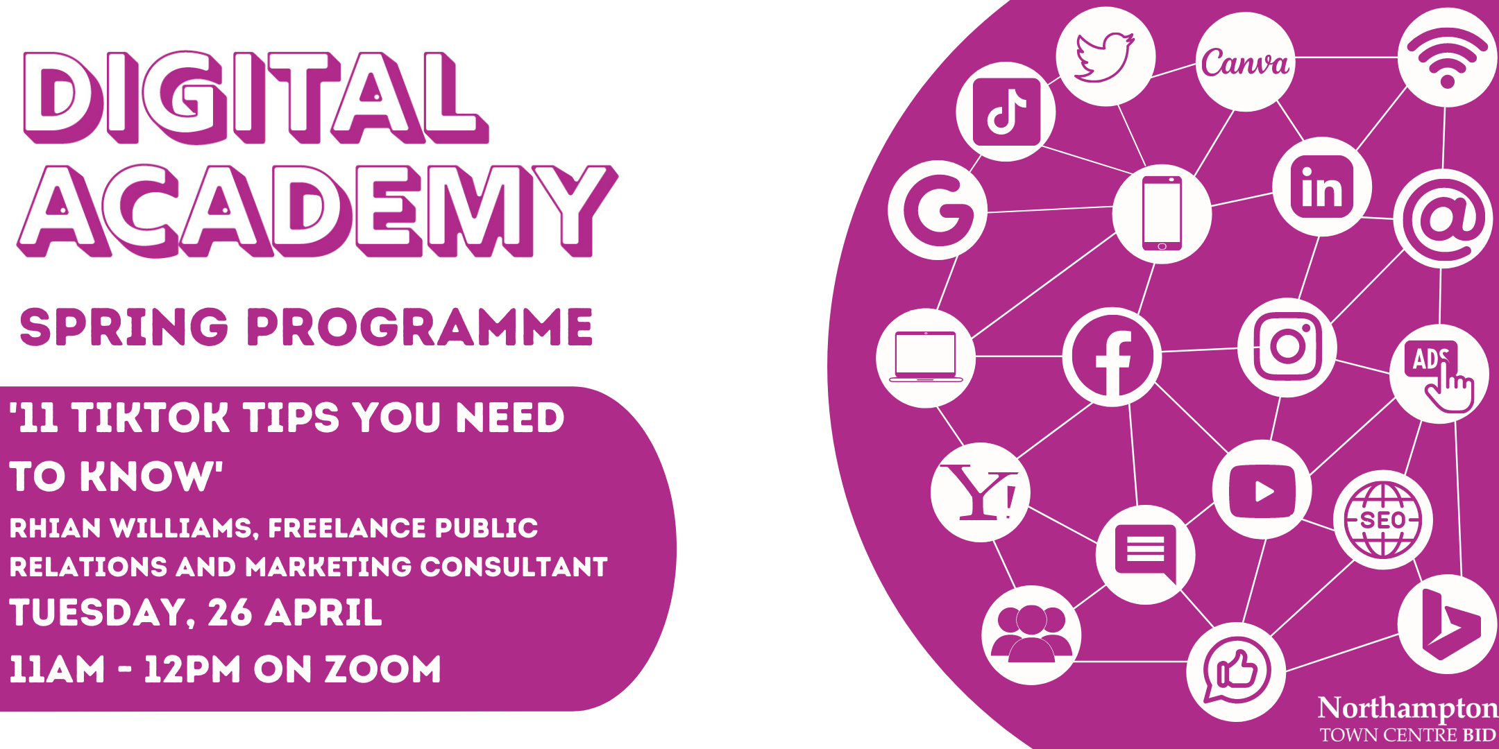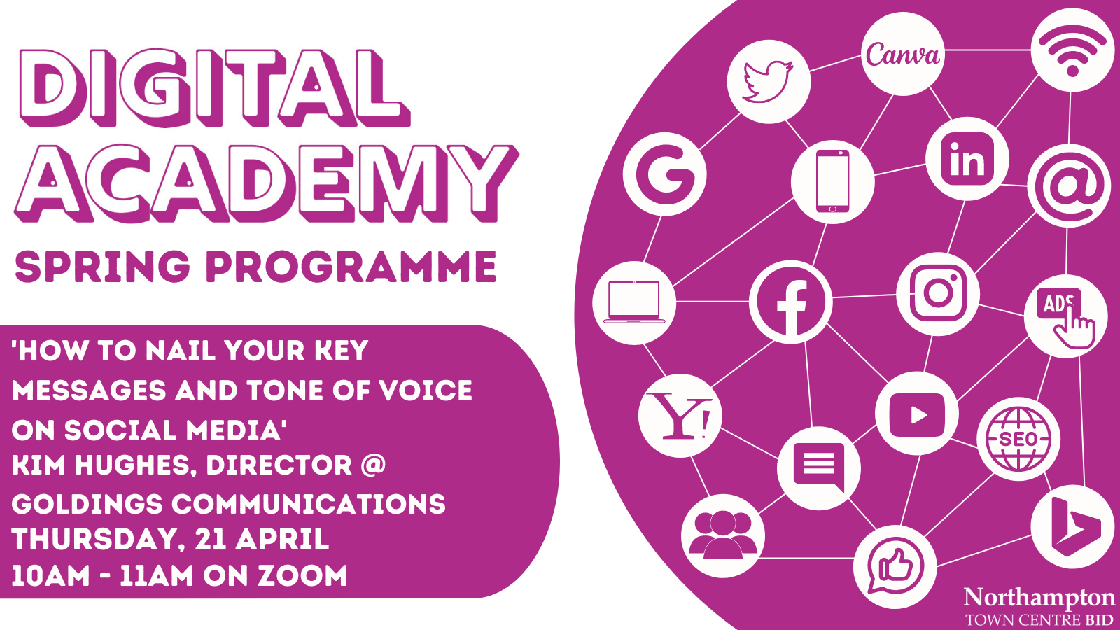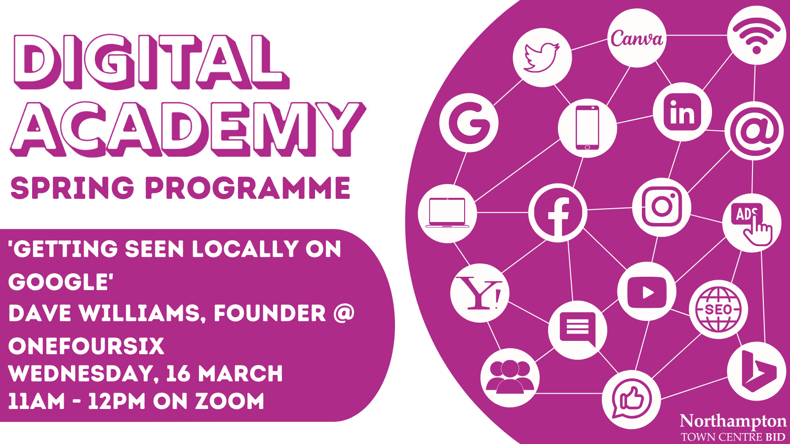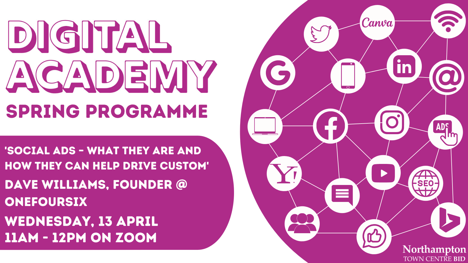 The Northampton BID Digital Academy has launched a free-to-attend spring programme to offer local companies the chance to enhance their marketing and digital abilities by attending online sessions with local experts.