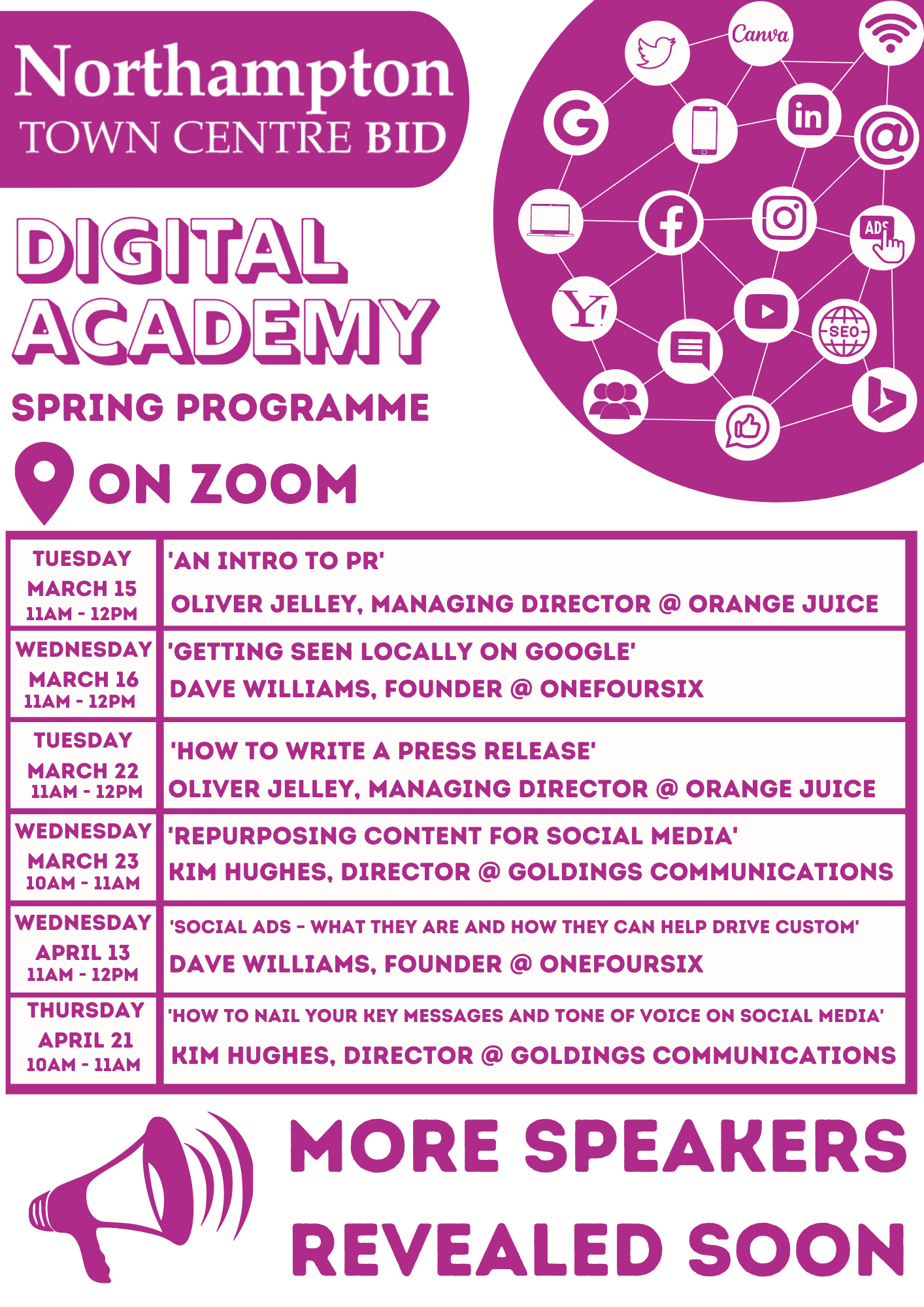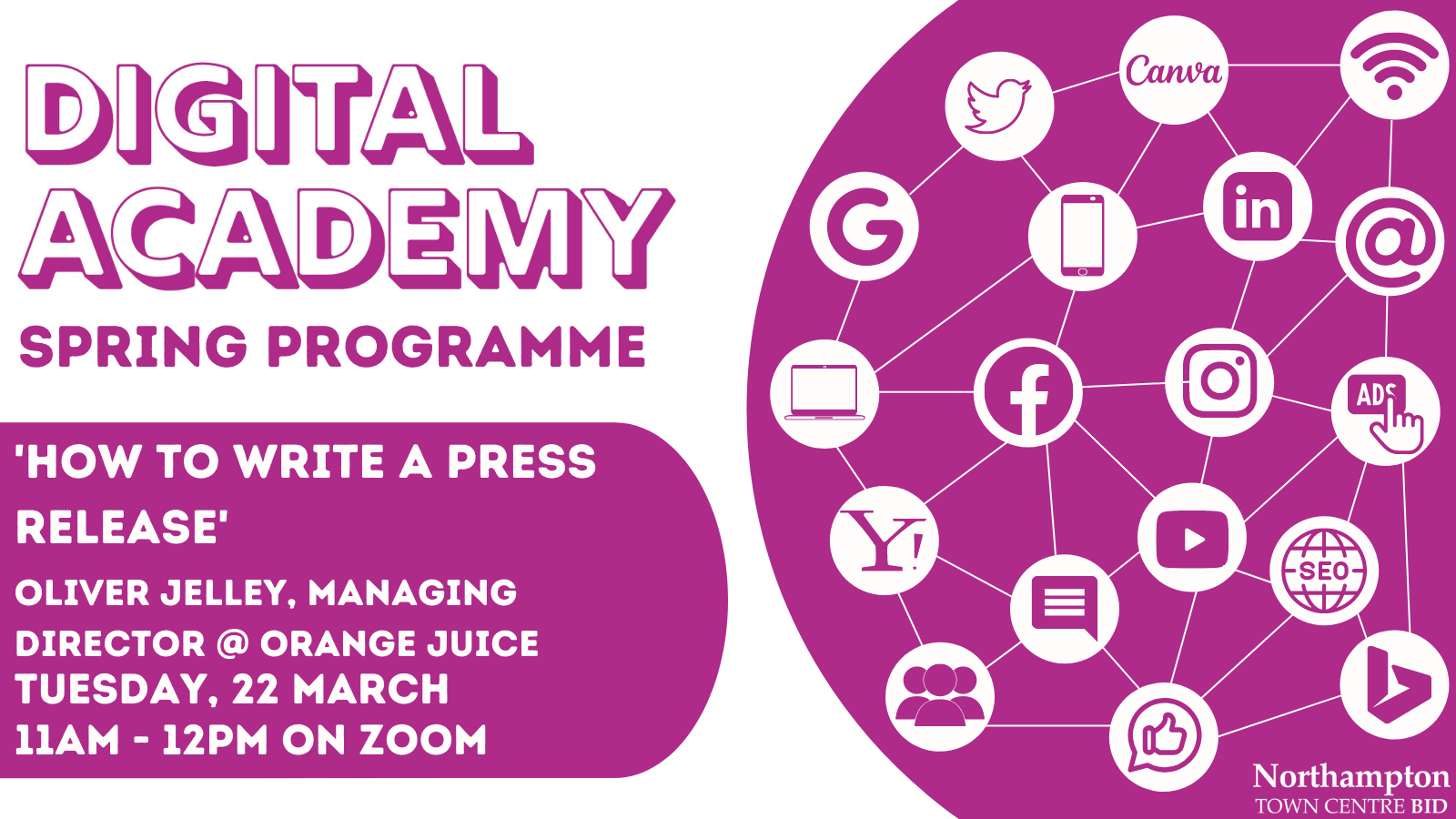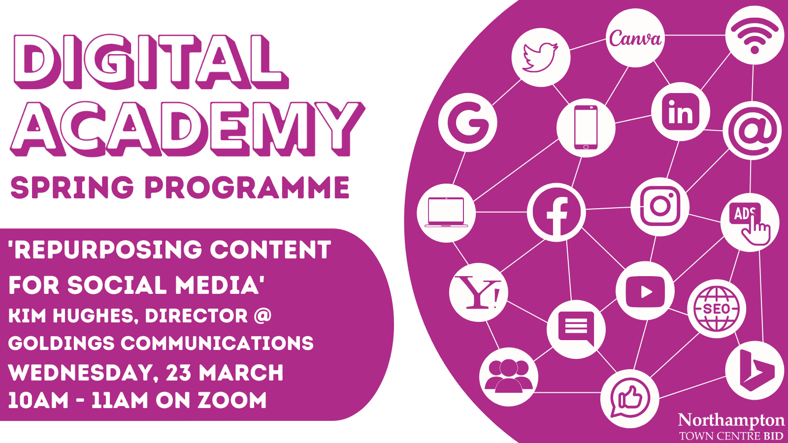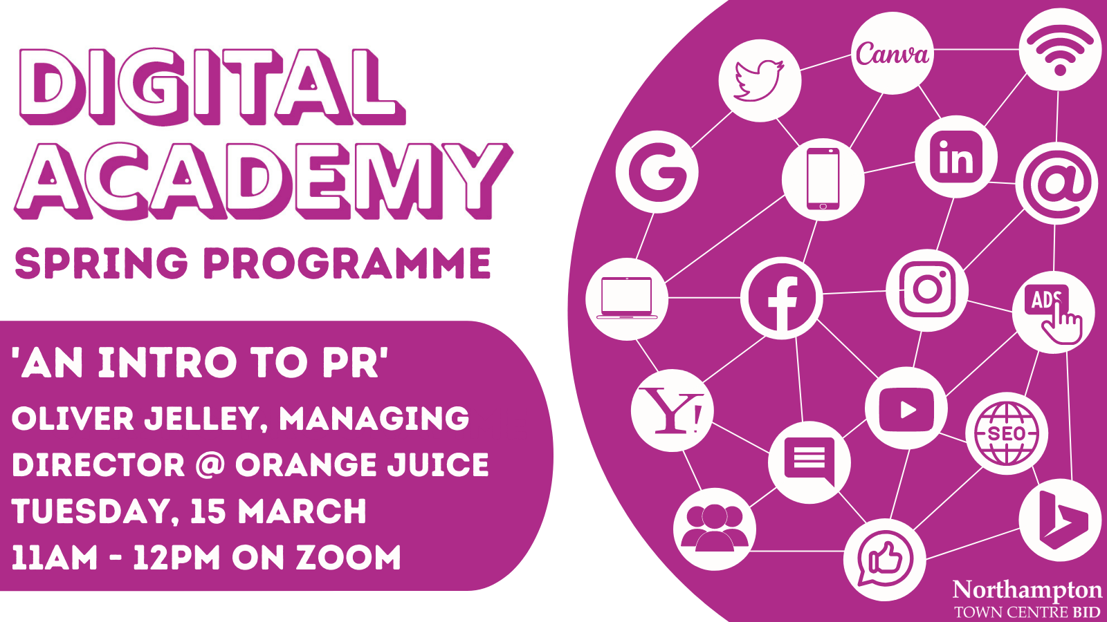 The Northampton BID Digital Academy has launched a free-to-attend spring programme to offer local companies the chance to enhance their marketing and digital abilities by attending online sessions with local experts.