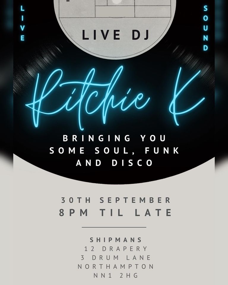 Come on down this Friday to listen to some soul, funk and disco by @ritchie__k from 8 pm. Don’t forget that while you’re here we also have our offer of 2 for Ł13 cocktails! Check out their Facebook page for full details. 12 Drapery, Northampton, NN1 2HG 01604 806048